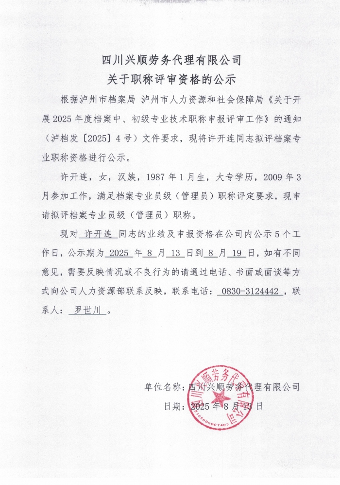 文章来源:四川兴顺劳务代理有限公司 发布时间:2025/8/13 15:38:25